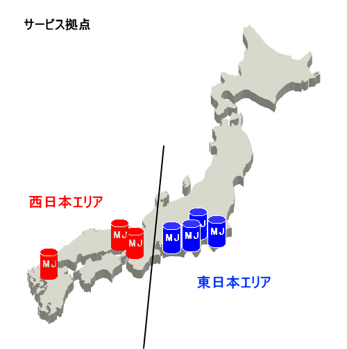 浜松・千葉・神奈川・静岡・大阪・神戸・福岡に サービス拠点を設置、迅速なサービス対応を実現しています。